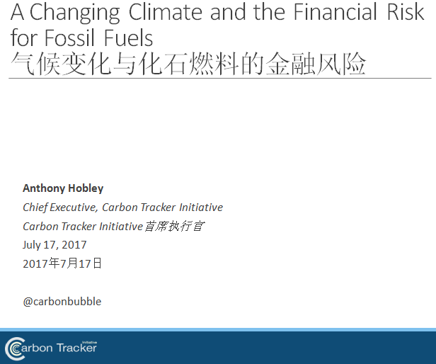 在第二单元:环境风险因素的分析与评估中,重点探讨了环境风险因素的量化方法和案例,主要包括碳风险、水风险和大气污染量化分析三部分。来自碳追踪(Carbon Tracker)的Anthony Hobley进行了主题发言。