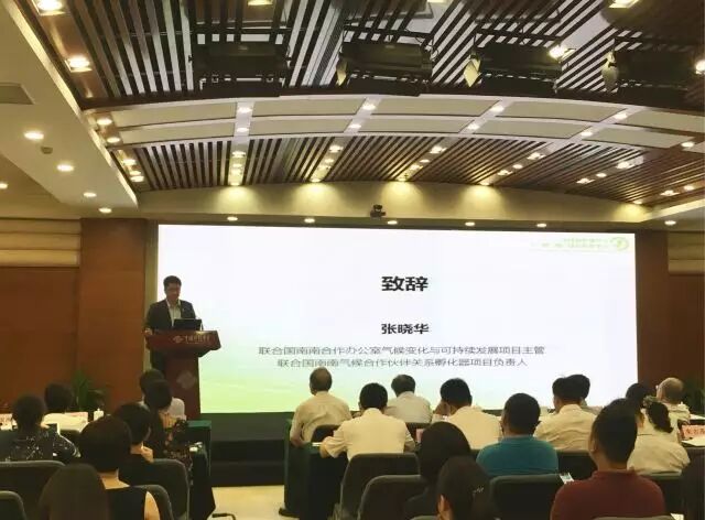 致辞:张晓华,联合国南南合作办公室气候变化与可持续发展项目主管、联合国南南气候合作伙伴关系孵化器项目负责人